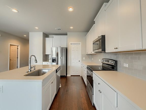 This well-maintained, turn-key, one level home in Liberty Hill area has a fantastic layout, open floorplan complete with great neutral finishes, including wood-look tile throughout. Just off the entrance are the secondary bedrooms and secondary full bath in between. An open living room, kitchen, and dining areas are fed by tons of natural light! The kitchen features white cabinets with quartz counters and tons of storage, oversized breakfast bar, and stainless appliances. The primary suite is just off the large living room and includes ensuite with extra large walk-in shower, double vanity and walk-in closet. The backyard is the perfect escape, ready for personalization and includes a lovely covered back patio. Quick access to 183 and 29 make this an ideal property close to dining, shopping and entertainment! A quick commute to Austin or relaxing Hill Country weekend away are within arms reach of this beautiful home.