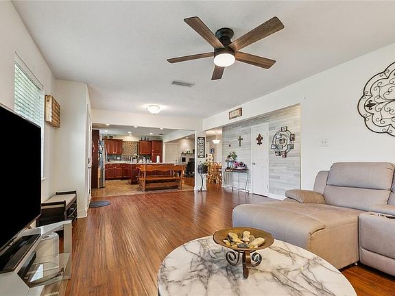Welcome to this beautifully maintained 3-bedroom, 2-bathroom home in Luling, offering modern updates and fantastic outdoor space. Step inside to find a spacious, carpet-free interior, featuring a large kitchen with granite countertops, a tiled backsplash, an island, a built-in microwave, and a generous pantry—perfect for all your cooking and storage needs.