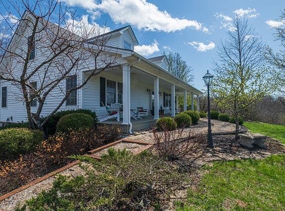 Peace and secluded wooded 6+ acres on one of the highest points in Scott County. Location is minutes from Toyota, Walmart, restaurants and I-75. Enjoy the sunsets from the large front porch or sit around the fire pit. Inside the custom built 1.5 story house you see an open floor plan with gleaming hardwood flooring. The cozy sitting area has a beautiful gas log fireplace and mantle perfect for decorating at Christmas. The kitchen has a granite topped island with storage. It allows for more prep space, snack bar or informal dining.