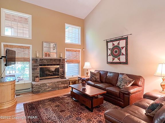 Move right in to this picture-perfect, newly updated, golf cottage located on the 4th fairway of the famed Donald Ross-designed white course in beautiful Buck Hill Falls! This home boasts an open floor plan with stone wood-burning fireplace, remodeled kitchen with granite counter tops and hardwood floors. The beautiful first floor master suite has a double-height ceiling, renovated master bath with granite counters and gorgeous views. There is a 2nd bedroom and full bath also on the main level. The 2nd floor has two more bedrooms and another full bath. Some furnishings will be included. Views of the golf course are magnificent and can be enjoyed from the spacious screened-in porch. Come see all that historic Buck Hill Falls has to offer, only two hours from New York and Philadelphia.