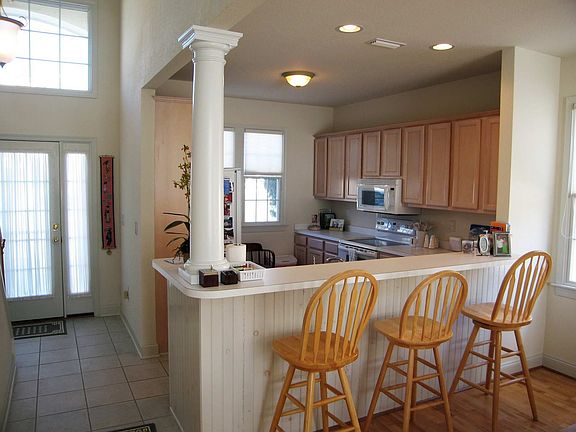 This pristine home looks and feels like it is brand new inside. Great open floor plan with large rooms throughout. The living room has a two story ceiling with two walls of windows to let in light. The dining room has stately columns. Great sunny patio with a view of a lovely tree! Which level do you prefer to have your master bedroom suite located? Well this home has one on each level plus an additional 3rd bedroom and bath on the 2nd level. Note the extras such as tile entry, kitchen