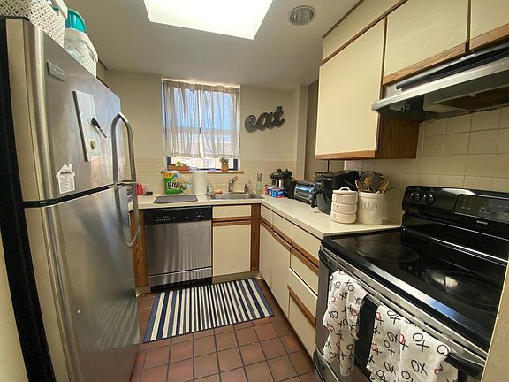TOP FLOOR Sunny floorplan Hardwood floors PRIVATE deck Opposite end bedrooms Central Air IN unit laundry 24/7 security Daily trash pick up