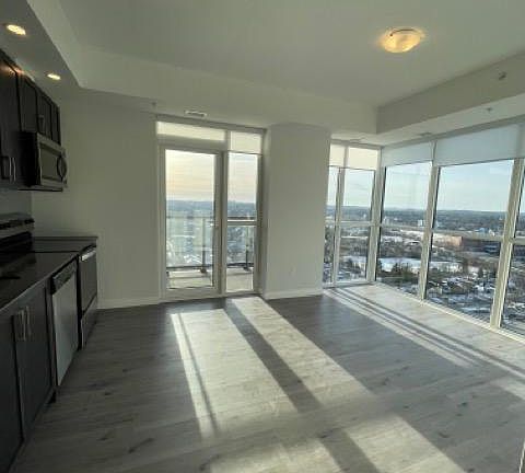 This brand new 2 bedroom suite has 788 sq ft of indoor living space and a 49 sq ft balcony, with fabulous evening and sunset views from the main living area on the 25th floor! This upgraded unit is finished in a modern grey colour palette, and comes with upgraded quartz countertops, cabinetry, flooring, window coverings, appliances, lighting and more. You will be just steps away from the Light Rail Train system and close to the GO train station with access into Toronto which will make commuting a breeze! You are close to shopping, cafes, restaurants and bars in downtown Kitchener. Close to the Innovation Centre, Google, U of W School of Pharmacy and McMaster's Medical School, D2L, KPMG (Glovebox), Deloitte, and much more. If parking is required, there is a paid city parking lot right next door for your convenience for $116+HST per month per space. It is free on evenings and weekends. Tenants pay for electricity usage in addition to the rent. This is paid directly to the utility provider, Metergy. Rogers internet, water, heating and cooling are included in the rent. Tenant insurance is a requirement of the lease as well, and must be in place before picking up keys. Tenants must abide by the condominium rules and by-laws. No smoking. Only small pets permitted. 1 year lease followed by month to month tenancy.