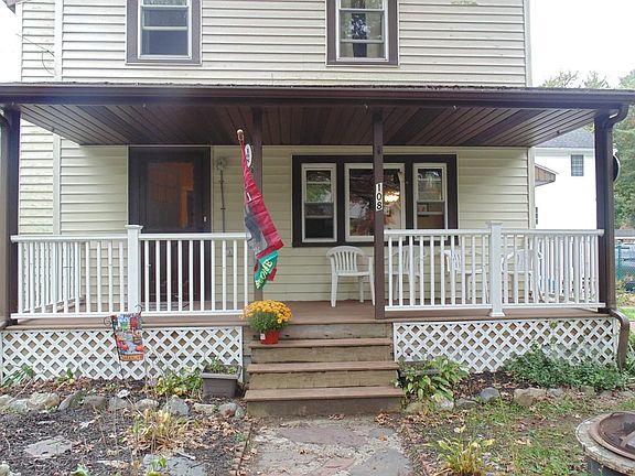 Do not miss this extremely spacious colonial located on a large corner lot. The first floor consists of an oversized kitchen with hardwood floors, dining room, living room and 1/2 bath. Second level has large, tiled bathroom with 3 bedrooms and then there is an additional 2 room suite on the third level with built in shelving and drawers for storage space! Wood deck walks out to large, fenced in yard with stone patio and 12x14 gambrel shed! Other great features include a mudroom, a beautiful farmers porch and a 2 year old water filtration system that will stay with the home. There is also plenty of additional storage space in the basement!