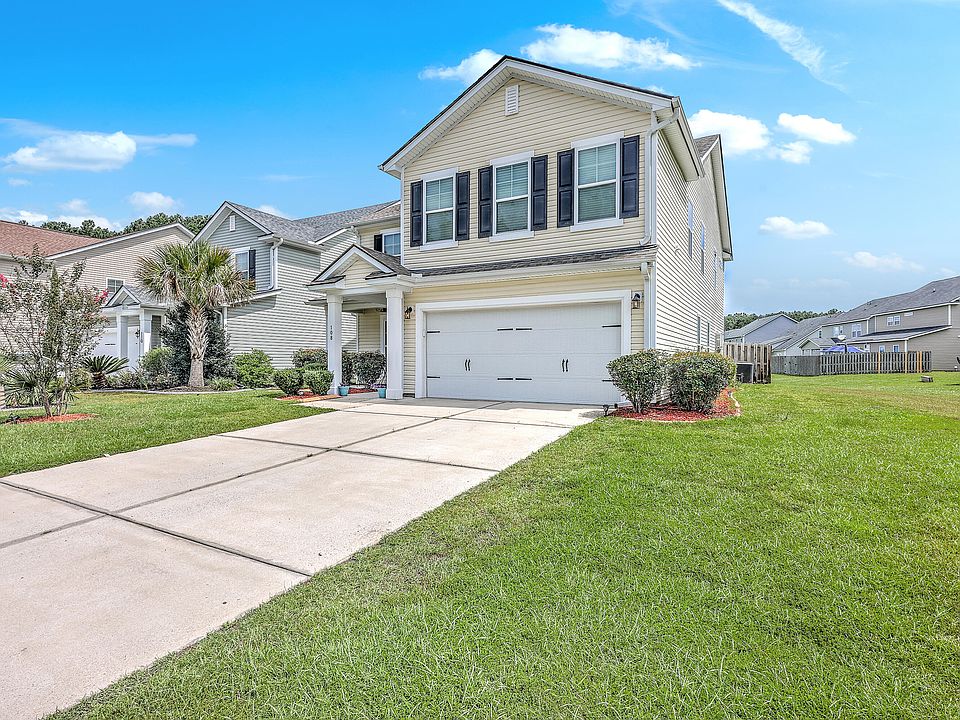 Welcome to this beautiful two-story home perfectly situated on a desirable corner lot with serene pond views in the sought-after Sanctuary Cove community of Cane Bay Plantation. This inviting property features a charming front porch and a spacious two-car garage, offering excellent curb appeal and a warm welcome.Step inside to find an elegant interior with crown molding, smooth ceilings, rich hardwood floors, and classic wainscoting. The bright and open floor plan is ideal for both everyday living and entertaining. The kitchen is a chef's dream, complete with dark-stained cabinetry, granite countertops, stainless steel appliances including a gas range, pendant and recessed lighting, a butler's pantry, and a large island with breakfast bar seating.Upstairs, a versatile loft offers the perfect space for a game room, media area, or second living space. The luxurious primary suite features a tray ceiling, crown molding, a spacious walk-in closet, and an ensuite bath with dual vanities, a garden tub, and a separate shower. Additional bedrooms are generously sized and each has access to its own bathroom ideal for family or guests. Step outside to your fenced-in backyard oasis, where you can relax on the extended screened-in patio while the kids and pets play. Neighborhood Highlights: Sanctuary Cove amenities: community pool, playground, and covered pavilion Access to Cane Bay Plantation's miles of scenic nature and paved trails Walk, bike, or golf cart to the YMCA, schools, and Cane Bay shopping center Easy access to I-26 and Downtown Summerville's dining, shopping, and entertainment This home offers the perfect blend of comfort, style, and convenience in one of the Lowcountry's most vibrant communities. Schedule your showing today and discover all that this exceptional home has to offer! Use preferred lender to buy this home and receive an incentive towards your closing costs!