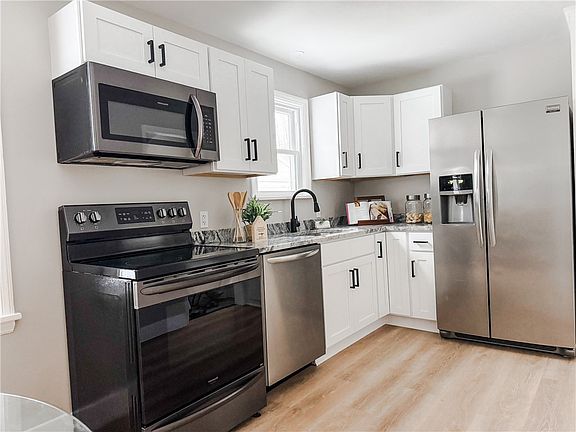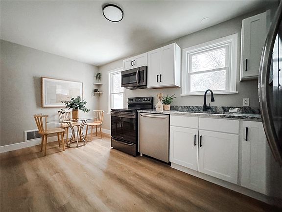 Beautifully remodeled home! Brand new eat in kitchen with all new cabinets and granite counters. All new luxury vinyl plank flooring and freshly painted throughout. All brand-new vinyl replacement windows. This home has 2 bedrooms on the first floor and the potential for a third bedroom on the second floor (approximately 400 sq.ft). There is 425 additional square feet in the finished basement. Fully fenced yard with a large backyard and patio too! Do not wait to see this one! Delayed negotiations until Tuesday February 18 @ 1:00.