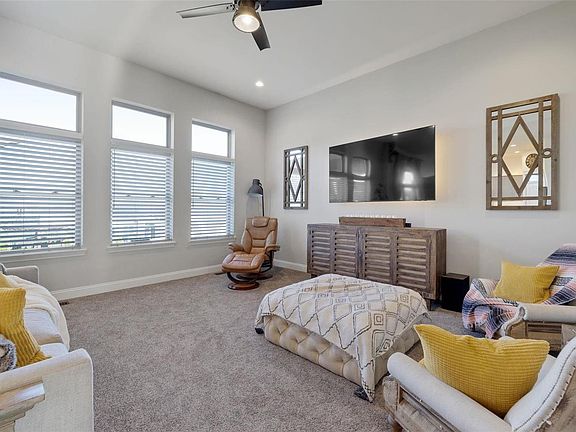 Welcome to this gorgeous ranch-style home with an open floor plan that offers an impressive space for comfortable living. The home features luxurious quartz countertops and stainless steel appliances that add a touch of elegance to the kitchen. The 11-foot ceilings  create a spacious and inviting atmosphere, perfect for entertaining family and friends. The 3-car oversized garage boasts epoxy floors and provides ample storage for all your needs. Step out to the stamped patio or composite deck with an oversized pergola to enjoy the serene surroundings and relax after a long day. The community pool is an added bonus, perfect for summer fun and relaxation. This home is located in a vibrant neighborhood that hosts many events throughout the year, including 4th of July parades, Easter Egg hunts, and holiday light competitions, making it a wonderful place to call home. This stunning home is a must-see for anyone looking for the perfect balance of luxury, comfort, and convenience.