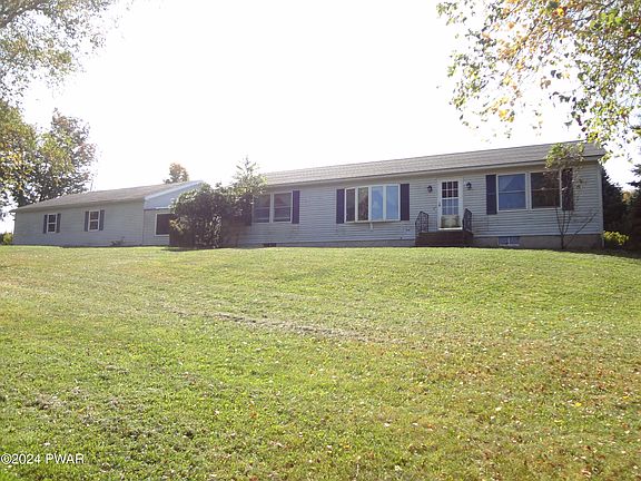 BREATHTAKING VIEWS! MINUTES TO BEAUTIFUL LAKE WALLENPAUPACK! This 3 Bedroom, 2 Bath Home sits on almost 5 acres with Fruit Trees, Grape Vines, Raspberry & Blueberry Bushes. One level living with Large Primary Suite, Large Eat-In Kitchen, Living Room with amazing views, 2 additional Bedrooms and a Full Unfinished Basement. Oversized 2-Car Garage with Workshop. 3-Stall Barn with 6 Paddocks, Storage Area and Frost-Free Hydrant and Electric. Large Metal Storage Building. So Private! This is Truly Paradise!