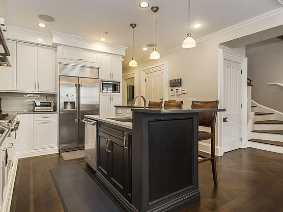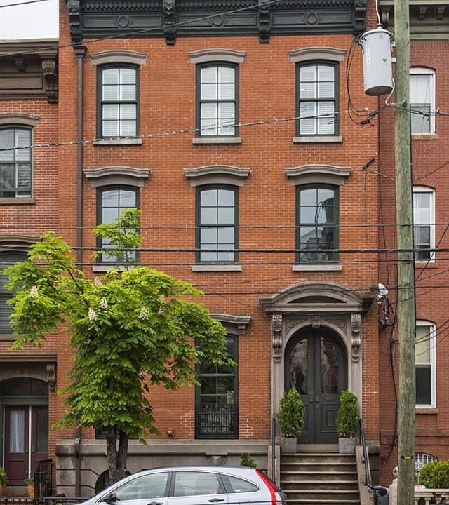 Boasting a fabulous location in the heart of Paulus Hook, this handsome brownstone offers a private outdoor balcony, a massive master suite with several large skylights, and a gorgeous state-of-the art kitchen. Make your way into this spacious abode and straight away you'll find an open plan between the kitchen, dining room and living room. The kitchen boasts a full suite of premium stainless steel appliances, including a dual-wall oven, double door refrigerator and dishwasher, a massive center island with seating and stunning stone countertops. The living room has a wall of built-in shelving and a cozy fireplace. Head to the rear of this level and find two rooms, one a spacious bedroom with a luxurious en-suite and the other perfect to be used as an office or however you see fit. A second full bath finishes the space. Venture up the beautiful curved staircase and upstairs find the crowning gem of the home, the master bedroom. Complete with a wall of windows, a wall of built-in shelving, six skylights, a private balcony, endless closets for storage and a jaw-dropping en-suite complete with a glass-enclosed shower, deep soaking tub and a gorgeous custom vanity. Rental parking across the street transferable to the new owner. Surrounding this home you'll find a plethora of things to do and places to see. You're just a few blocks blocks from the Exchange Place, Grove Street Paths and NY Waterway Ferry. Near delectable dining, like Satis Bistro, Light Horse Tavern and just a few homes down from Paulus Hook Park.