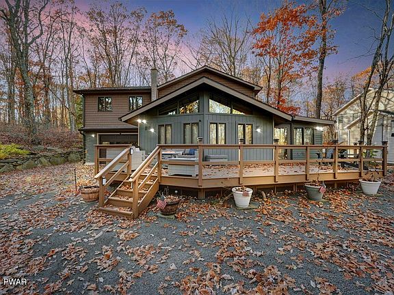 Set on nearly an acre of peaceful, wooded landscape, this beautifully renovated 3-bedroom, 2.5-bath home combines luxury and comfort in the exclusive Hemlock Farms community. Step into the heart of the home--a stunning, modern kitchen that truly elevates the space. With a spacious island that invites everyone to cook, gather, and share, this kitchen is designed for both function and style, making it ideal for family meals and entertaining.The Great Room's open floor plan flows effortlessly, featuring high vaulted ceilings, an abundance of sunlight streaming through expansive windows, and a cozy free-standing propane stove that adds warmth and character. Upstairs you will find a spacious and thoughtfully designed Recreation Room, complete with a stylish bar. Down the hall, you will discover two extra rooms, offering endless possibilities--whether for extra sleeping space, a home office, an art studio, or whatever suits your lifestyle. Step outside to the expansive deck for serene outdoor living. Additional touches like a heated garage, multiple heating and cooling sources, and a private outdoor shower with hot & cold water perfect for rinsing off after a day outdoors or an afternoon at the lake.Hemlock Farms offers an array of premium amenities, including two outdoor pools, an indoor pool, a fitness center, pickleball and tennis courts, and several lakes with sandy beaches. Located near I-84 and Lake Wallenpaupack, this home is more than just a residence; it's a lifestyle of luxury, adventure, and community, surrounded by the natural beauty of the Pocono Mountains. Bar does not convey with the property.