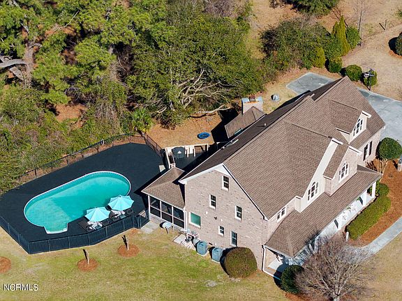 Your new home in Scotts Hill Bluff awaits! This stunning 4 bedroom, 3 bath brick home features spacious interiors and timeless design. Enjoy the luxury of a saltwater in-ground pool on a half-acre lot creating the perfect oasis for relaxation and entertainment. Gourmet kitchen boasts quartz countertops, an expansive island, farmhouse sink and soft-close drawers. First floor features living room with fireplace and timeless dIning room. Primary suite is on the main level with luxury heated flooring option in bathroom, walk-in closet, dual vanities and walk-in shower. There are four guest bedrooms on second floor. Family room above the garage can be used as an additional living room/bedroom/game room. The generously sized laundry room is complete with sink and cabinets. Head on up to the third level to find an additional rooms for an office or den. Expansive deck is an ideal place to host gatherings. Trex deck has been freshly stained. Enjoy lounging in the charming screened-in back porch. The half acre backyard is enclosed with wrought-iron fencing. Mature landscaping, large rocking-chair front porch, extra-long driveway and side-entry garage enhance the home's curb appeal. Property has well-so no water bills! Oversized two-car garage provides ample storage-perfect for storing your water toys. House shows beautifully and it is obvious owners have immaculately cared for this home. Living in Scotts Hill Bluff gets even better-Marsh Creek@ Scotts Hill Marina is conveniently nearby offering dry boat storage and wet slips. Abbey Nature Preserve is also in close proximity with 62 miles of nature trails. Home is districted for top rated Topsail schools. Opportunity to own a home in Wilmington with such a large lot and in-ground pool doesn't present itself often. Summer is just around the corner and soon you can be poolside. Book a private showing today. 108 Great Pine Court may be your next place to call home.