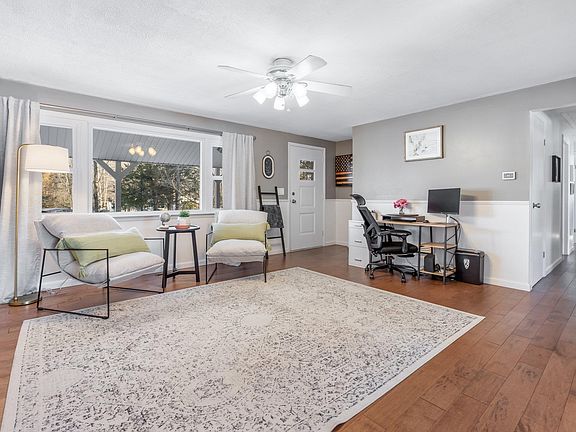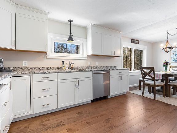 Don't miss out on this move in ready one level living ranch home located on a quiet Raymond road. This exceptionally maintained home features open areas of the livingroom, kitchen, and dining making it perfect for entertaining and/or simply enjoying a cozy night at home in front of the fireplace. With beautiful hardwood flooring throughout, the updated kitchen offers ample cabinets and granite countertops that will surely not disappoint! All 3 bedrooms are on the main floor also featuring continuous hardwood including the primary bedroom with a private 1/2 bath, spacious 2nd bedroom, 3rd bedroom perfect for a nursery, office, or another bedroom, and large full bath. Keep the New England snow off of your car in your detached 2 garage and out of your home with the perfect mudroom entrance! Adjacent to the mudroom is a large family room for even more space. This beautiful family room offers an abundance of natural light, windows, cathedral ceilings, and another wood stove to keep you warm during cold winter days. Outside you will find a large level back yard with plenty of room for cookouts, outdoor play, and entertaining. And an additional fully fenced in side yard. Featuring so many upgrades including new Rheem hot water heater in 2022, new Roth oil tank and garage roof in 2023, and new submersible well pump, well head, and filtration system installed in 2024. Schedule your private showing today on this updated, move in ready home!! OFFER DEADLINE Monday, 2/3 @ 12pm
