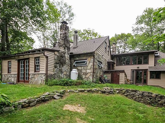 ***Make us an offer we cannot refuse*** One of a kind charming stone chalet. If you love stone fireplaces, wide board floors, beamed and vaulted ceilings, lots of nooks and crannies, this home is for you. Spacious first floor room w/woodstove and door to rear yard could be master bedroom or living area-your choice. Dining Room and Family Room (with door to side yard) have stone fireplaces. Newer: roof, oil tank, kitchen and bathroom windows, septic tank. On almost two acres of privacy and in ground pool that only needs a liner. Convenient to village of Pleasant Valley, yet with a country feel.