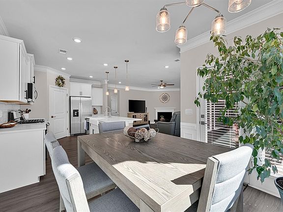 This craftsman designed single story home with over 1900 sq ft. 4 bedrooms, 3 full baths AND a 3-car finished garage that also has a sink in it, and the sellers have epoxied the garage floor since ownership, which adds appearance and safety. It's single story living at its best. Spacious rooms with lots of designer features like quartz counters in kitchen and baths, soft close doors and drawers in the kitchen, trash can pull out cabinet, pendant lights over the kitchen island, and walk-in pantry. Upgraded tile flooring in all baths and laundry room, tile shower in the owner's bath and extended Revwood laminate plank Floors throughout the main living areas. Family room has a gas log fireplace that can be activated with just a flip of the switch! Stainless steel appliances include a gas range, refrigerator, microwave and dishwasher. The laundry room is extremely roomy. The covered back porch leads to a private backyard with a view of trees. More additions by the sellers are the gorgeous white vinyl privacy fence in the back and an irrigation system. Irrigation system is two meters for cost savings. It comes complete with lots of energy saving features and our “Home-Is-Connected” Smart Home Technology! Don’t hesitate to make this lovely home yours! This is NO sign. Look for #108 on right side.
