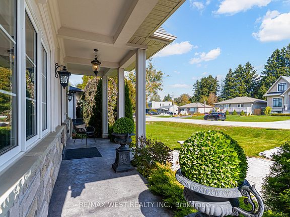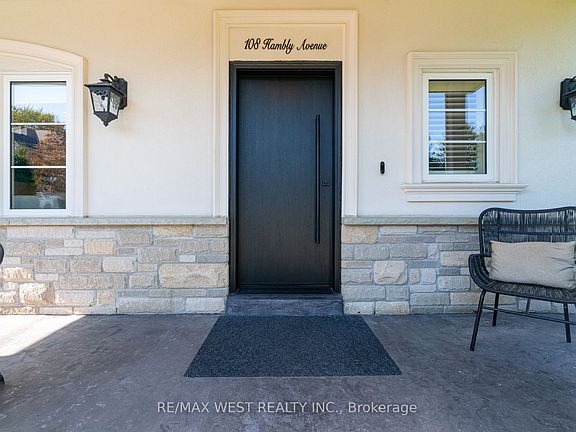 Welcome to 108 Hambly Ave., a custom-built detached home in one of King City's most coveted neighbourhoods, surrounded by other high-end luxury residences. This immaculate, turn-key property exudes elegance and pride-of-ownership at every turn. From the moment you arrive, you're greeted by the stucco and stone façade, charming covered front porch, and modern solid-wood front door. Inside, rich hardwood floors, LED pot lights, automated blinds and meticulous trim details elevate every space. The great room and dining room feature coffered tray ceilings with moulding, pot lights and decorative accent wall designs. The bright, open-concept kitchen is an entertainer's dream with a massive 9 ft x 5 ft centre island, dual undermount sinks, mini-wine fridge, under-cabinet lighting and generous counter space. A main floor office offers the perfect work-from-home setup, while the stunning oversized laundry room with walkout to the rear patio adds convenience and style. Upstairs, the primary suite impresses with a tall tray ceiling, walk-in closet, multiple windows and Juliette balcony. The grand 6-piece ensuite features a vaulted ceiling, freestanding soaker tub, dual vanities and a glass shower. The finished basement extends the living space with an electric fireplace, full bathroom, open-concept recreational area ideal for kids or gatherings and additional storage. Outside, lush landscaping frames the property with cedars, grasses, hedges, and flowers. The expansive rear deck spans the width of the home and includes a gas-line hookup. Outdoor cabana offers a covered patio, interior living room and 3-piece bath, perfect for outdoor entertaining. The garage has a separate electrical panel setup for future landscape/pool requirements.The driveway has been newly resealed, and the west-facing backyard bathes the home in natural light. This home is unique, well-crafted and a rare find-shows to absolute perfection!