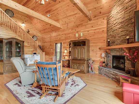 Single-owner custom home with rustic charm in Tellico Village Kahite neighborhood. Hardie plank and stone exterior, two levels of decking, professional landscaping, stainless appliances, granite counters and island, farm sink, hardwood flooring throughout main living areas, owners suite, and loft. Ceramic-tiled baths and laundry. True sense of mountain living with knotty pine walls throughout. Vaulted ceiling in the open area on the main has rough wood beams extending entire expanse of home and windows with mountain views at the front of home. Windows in both great room and loft have UV coating. Open floor plan joins living, dining & kitchen areas into one fantastic gathering space with a loft that overlooks it all.