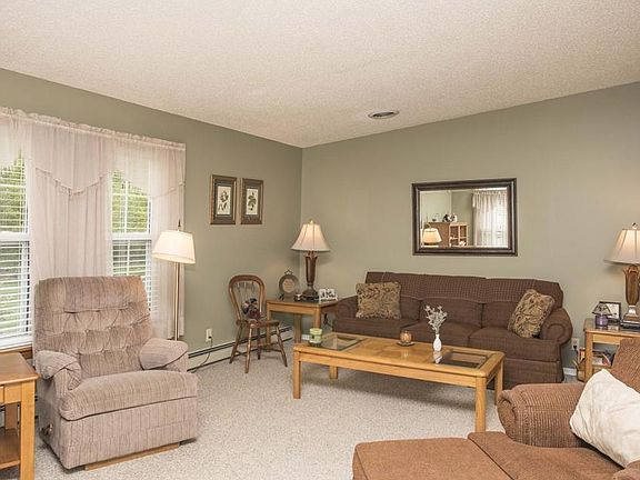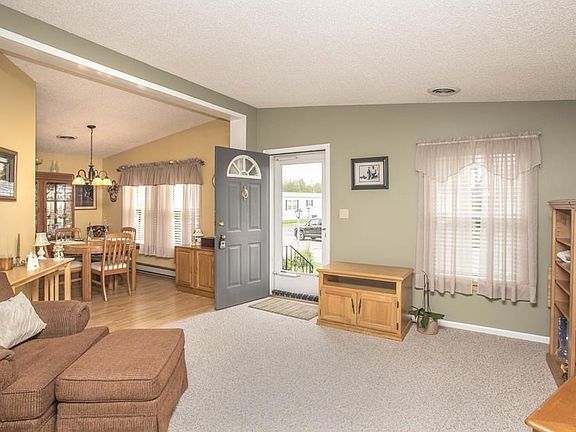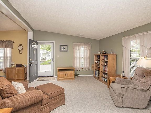 This immaculate double wide home resides in desirable Rocky Knoll Estates 55+ community. Set on an ideal corner lot, this home has so much room to roam inside and out! Step inside to the spacious living room with cathedral ceilings that leads to the eat-in kitchen/dining combo. The kitchen boasts upgraded coriander counter tops, plenty of cabinets, breakfast bar and laminate flooring. Down the hallway you'll find 2 sizable bedrooms and 2 full baths(one being the generous master), along with a full laundry room that gives access to the outside patio. Both bedrooms feature walk in closets for extra storage space. Big, bright, updated windows throughout let in lots of natural light. Wander outside to find lovely plantings and trees that surround the home and give a sense of privacy. With both the inside and outside being meticulously maintained, there's nothing for you to do except move in! Come and see what easy living is all about here at Rocky Knoll Estates.