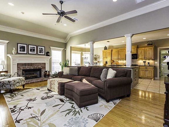 Southern Living inspired home with modern open floor plan! Gleaming hardwood flooring, custom molding & trim, transoms & tray ceilings are just a few of the finer details! Perfect for entertaining w/a spacious family room & gorgeous kitchen separated by an oversized island w/custom cabinets & granite countertops! Luxurious en suite master w/bay window sitting area on main level is separate from guest BR/BA. 3 more BR's & jack/jill bath up. Sprinkler syst, fenced bkyd. Roof 3 yrs old. 1 yr 2-10 home warranty