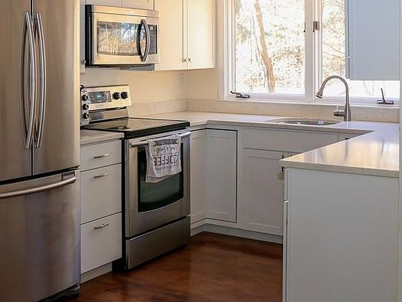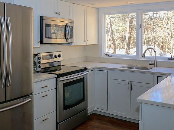Newly renovated and remodeled house with fresh and modern finishes. Has a rural feel but is just 4 minutes from I-91. 3 BR, 1 ½ bath with open kitchen/living space and a back deck overlooking the private backyard. Move-in ready, just extensively remodeled by master carpenter and experienced design team with brand new stainless kitchen appliances, quartz countertops, and new cabinets. Septic was updated and Title 5 has passed. Heating system extensively serviced, electric and plumbing have been updated, and basement has been dry-locked. Exterior is vinyl sided, roof has architectural shingles. Bonus office/play room in walk-out basement has attached laundry closet, and large shed with electricity is perfect for storage or projects. Light and airy feel to house and property, situated on a knoll with newly sodded backyard. Conveniently located near surrounding town centers. Open House Sat 9/23/17 1-3pm