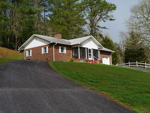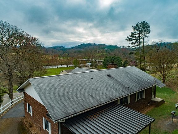 This solid BRICK RANCH offers you a home with easy, single-level living in a pristine mountain setting. Wow-what a VIEW of the mountains & the Little Tennessee River! Your home is paved to the door w/ a circular paved driveway & attached over-sized heated single-car garage/workshop PLUS attached carport. New engineered hardwood floors were installed through much of the home by the current owners. You'll love the stone gas-log fireplace for a cozy feeling in the winter, plus the convenience of a Trane furnace for central heat/air. Wait until you see the HUGE KITCHEN! Lots of cabinets & counter space plus 2 pantries, nice-sized dining area & convenient large laundry room with sink and exterior access. The bedrooms have a split plan, with a walk-in shower for the master & a tub-shower combo in the hallway bath for guest access. The unfinished basement is approx. 28x40 with wide access stairs from the heated garage space. What a fabulous space for hobbies, clean storage or future finishing for bonus space. There's also an exterior storage shed for your lawn tools. Nice but easily-managed side yard for pets or kiddos. But you'll live on the SCREENED PORCH overlooking the Cowee Valley!