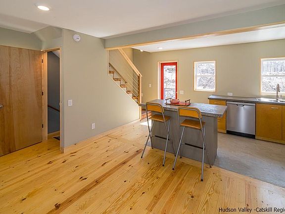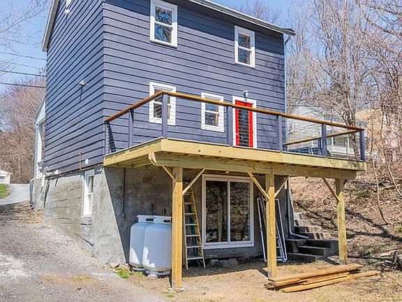 Just in time for spring: a Kingston renovation that's fresh, complete and high-quality, too. This masterfully re-imagined classic in Kingston's hot Rondout District is long on style and truly move-in ready, featuring a bright and open living and kitchen space on the ground floor, bracketed above and below by two wonderful and private floor-through bedrooms, each with its own sleek, low-maintenance full bathroom. The top floor master suite is a jaw-dropper, with a windowed interior stair wall and a cathedral ceiling - even in the en suite bathroom. All three levels feature new pine floors, new sheetrock, high-efficiency mechanicals, recessed lighting, radiant-floor heating and lots of sunlight everywhere. A large new deck adjoining the main floor almost doubles the space for entertaining and provides the perfect overlook to the private and undeveloped landscape behind the house. Minutes by foot from Abeel Street, Broadway and the kayak-friendly Rondout Creek, this house is a stylish, no-fuss option tee'd up and ready to let you savor summer '18 and many great seasons beyond.