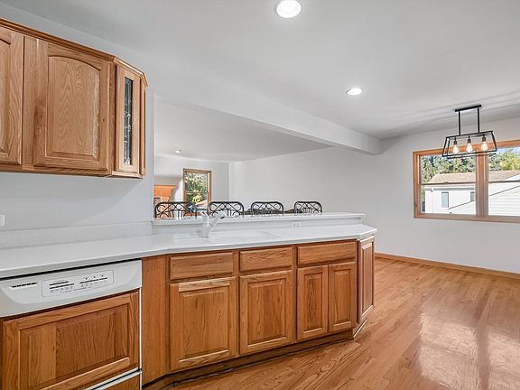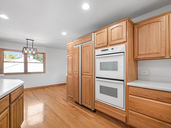 MASSIVE ADDITION!! Welcome to your new hub for entertaining! This beautifully maintained, freshly painted home is centered around a truly MASSIVE 22'x19' family room addition, complete with a cozy fireplace-perfect for hosting holiday gatherings or game nights. The open-concept kitchen is ready for your culinary adventures, featuring a double oven, custom pantry cabinet with slide-out shelving, and elegant Corian countertops with bar seating that seamlessly connects to the family room. Step outside to your private, deep fenced backyard oasis where an enormous, newly repaired and stained two-tier deck awaits your summer BBQs and alfresco dining. Practical features abound, including an oversized garage with extra storage and a second refrigerator, a huge concrete-floored storage space under the addition, a newer furnace, and new light fixtures inside and out. Plus, a major bonus: a newer sewer pipe (2023) with a 25-year warranty! Enjoy the ultimate family convenience: just a short stroll to the end of the street is Hoover Elementary School, Park, and Playground. This is more than a home; it's a space built for making memories.