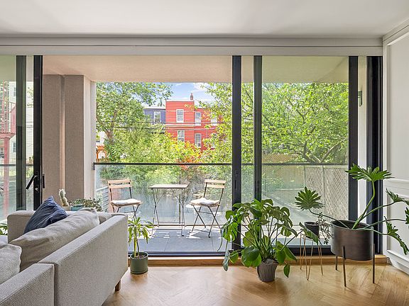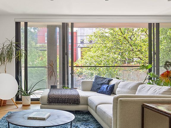 An alluring, recently constructed, 3 bedroom, 3 bathroom, 1,719 SF duplex with outdoor space in a boutique condo awaits you in the heart of Greenpoint. This exquisitely designed home feels like living in your own private townhouse. The open plan living room with gorgeous herringbone flooring leads to a wall of floor-to-ceiling windows, letting in Southern light and giving way to the terrace for indoor/outdoor living and entertaining. The chef's kitchen has smoked walnut cabinetry, Calacatta Venice Quartz countertops, Thermador stainless steel smart appliances including a vented gas range, and a waterfall peninsula. By the foyer is a bedroom with a balcony, where the room can alternatively be used as a home office or guest suite with access to a full bathroom. A large laundry room and a hallway closet also grace this floor. Up the sleek, glass-enclosed staircase to the second floor leads to the South-facing primary bedroom with a walk-in closet and an en-suite bathroom with Bianco Bello and herringbone tiling. The third bedroom and third bathroom are also on this level. Both upstairs bedrooms overlook the neighborhood's charming backyard gardens. All windows come with custom shades, and three-zoned central AC further adds to the home's conveniences. There is bike storage in the basement. 108 India Street is located among the vibrant neighborhood's great restaurants and cafes, yet is tucked away on a peaceful, tree-lined street. The G train is on the corner allowing easy commuting to Manhattan in less than 30 minutes. Upfront costs include a $20 rental application per applicant, and due at lease signing are first month's rent and a 1 month security deposit.