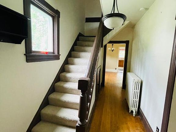 Who doesn't adore an antique house with magnificent architecture? This house will beckon you. Everything from the porch swing to the hardwood flooring, arched doorways, fireplace, and built-in library in the room is beautiful. Welcome to this spacious house with a sunroom off the kitchen and a half bath; go out the arched back doors to the terrace and yard. Find a play house or small shed in the back, as well as a separate two-stall garage with an upper story, to meet all of your requirements. This house has two updated full bathrooms on the second floor. One has a new walk-in shower, while the other has a jack and jill bathroom and a huge landing large enough for an office, play space, or exercise area surrounded by three bedrooms.