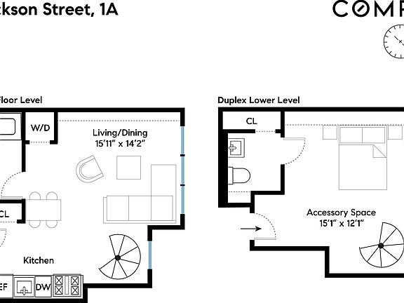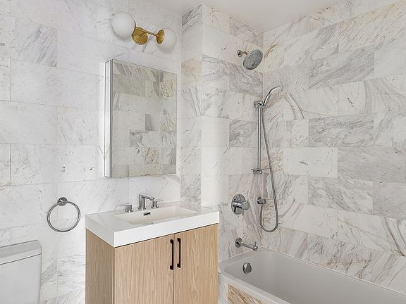 OPEN HOUSE SUNDAY 11/10 11-12:15 Stunning duplex in prime Williamsburg! Welcome home to 108 Jackson Street, a modern and warm boutique luxury condominium nestled on a tree-lined street in the heart of Williamsburg. 1A is a sun-filled, spacious duplex with oversized windows and rich finishes. The main level features white oak hardwood floors, recessed lighting, in-unit Bosch washer and dryer, video intercom, and a storage closet. The kitchen boasts quartz countertops, a Bertazzoni induction range, Bosch dishwasher and microwave, and stunning custom cabinetry. The first of two marble bathrooms features a large soaking tub, custom vanity and cabinetry, Toto toilet, Kohler medicine cabinet, and Grohe fixtures. Enjoy two air conditioning zones, unique to each level. Down the spiral staircase, you'll find a large sleeping area that easily fits a king bed plus furniture, as well as a closet and a beautiful marble half bath with additional storage. 108 Jackson is just blocks from the L and G trains at Graham, Lorimer, and Metropolitan, Citi Bike terminals, restaurants, bars, shops, and cultural venues. Live in your dream neighborhood with easy access to Manhattan!