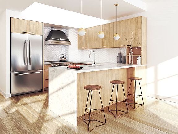 In a new luxury boutique building, in the heart of Williamsburg— 3 bedroom penthouse duplex, situated on an easy-going tree-lined street. Featuring an incredible 5 outdoor living spaces— a balcony off the living room, a balcony accessible from both guest bedrooms, 2 terraces on the upper level, including one directly off the master suite, and a private rooftop space. Full-floor layout affords natural light from two exposures through oversized double glazed windows. Interiors don in a soothing palette of natural materials and organic textures, all grounded by white oak hardwood floors. Kitchen features beautiful quartz countertops with wood grain laminate cabinets, Bertazzoni range & hood, Bosch speed oven, Avanti wine cooler, and Bosch dishwasher. Marble-clad bath features custom double-vanity & cabinetry, Toto toilet, Kohler medicine cabinet, Duravit/Kohler soaking tub, and Grohe fixtures & accessories. Accessed by key-locked elevator and equipped with security & video intercom system and in-residence Bosch washer & dryer. With a total of 1,148 sqft of private outdoor balcony and rooftop. Adored for its bohemian vibe and connectivity to Manhattan, life at 108 Jackson places you in the midst of an amazing array of eats, boutiques, and a dynamic Williamsburg performing arts scene. Enjoy countless recreational activities at McCarren Park, and commuting is easy and convenient— being merely minutes from direct access to Manhattan via the L train, and near to the G train for cross-town travel, with a Citi Bike terminal less than a minute from the front door. The artist and computer renderings and interior and exterior decorations, finishes, fixtures, appliances and furnishings are provided for illustrative purposes only and reflect the planned scale and spirit of the building. Sponsor makes no representations or warranties except as may be set forth in the Offering Plan. All square footages and dimensions are approximate and subject to normal construction variances and tolerances. Square footages exceed useable floor area. Sponsor makes no representation that future construction in the neighborhood surrounding the Condominium will not result in the obstruction of the views from any windows and/or exterior space. Sponsor reserves the right to make substitutions of material, equipment, fixtures, finishes and appliances in accordance with the terms of the Offering Plan. Equal Housing Opportunity. The complete terms are available in an offering plan from the Sponsor. File no. CD19-0300.