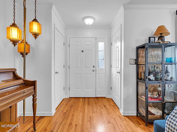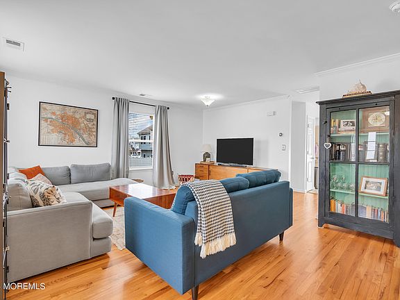 Red Bank's Bergen Square offers this highly desirable 3 bedroom 2 bath end unit. This tastefully decorated home offers spacious rooms, including oversized living room with hardwood floors and crown molding, eat in kitchen with granite countertops, tiled backsplash, stainless steel appliances, and slider to patio, full bath with newer vanity on the 1st level. 2nd floor has 3 spacious bedrooms including large master bedroom with 2 walk in closets, and full bath. Finished basement with storage area that has washer and dryer. Exterior features vinyl fenced yard with paver patio. Great location close to NYC train, downtown Red Bank, and local shopping.