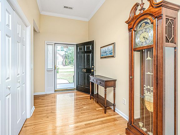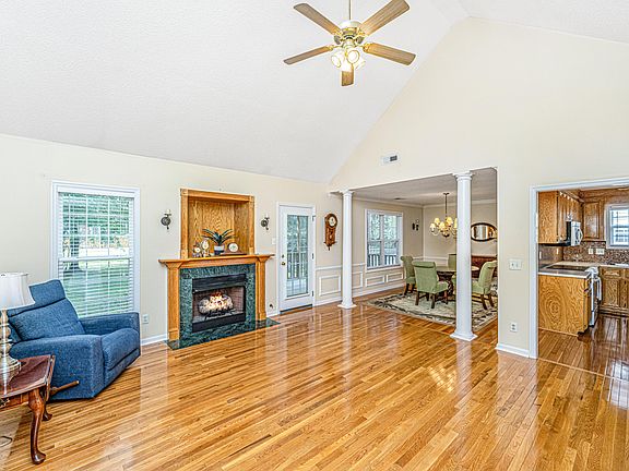 Lovingly cared for one owner Vaughn built home. Immaculate wood floors in all areas except bedrooms two, three, FROG. and two bathrooms. Ceramic tile in primary and hall full bathroom. Upgraded carpet in bedrooms two, three and FROG. Corian countertops in the kitchen and most appliances are stainless steel. Large great room with gas fireplace, formal dining room and eat in kitchen. Cathedral ceilings in the great room, and bedroom three. FROG can be a playroom or 4th bedroom (it has a closet). Brand new HVAC in July 2024 with a 10 year transferable warranty. Over .3 acres that backs up to a dry pond. Enjoy your coffee on the screened porch.! There is a handicapped ramp that can stay or will be removed if buyers prefer. This is an estate sale, but home is in pristine condition! A MUST SEE