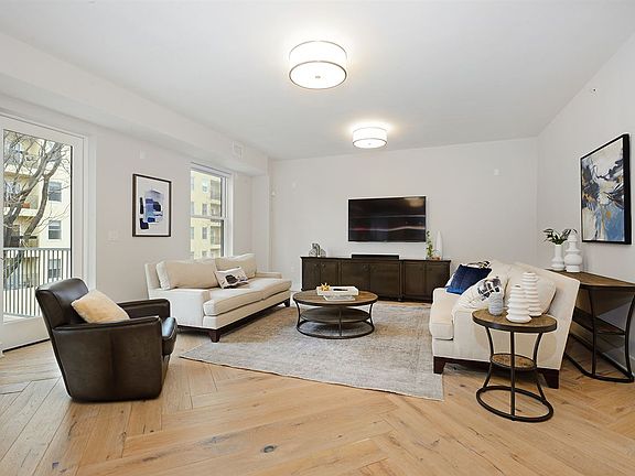 ***Explore this spectacular residence in the comfort of your own home with the provided virtual tour link.. Call for private showings *** Live the luxe life in this family friendly, stunning 2800+ sq ft home with oversized 2 car garage, terrace off living room & 1000 sq. ft. private landscaped yard. With 4 bedrooms & 2.5 baths spanning across 1 floor, #2 at 108 Jefferson St. has it all: Steel & concrete construction by The Taurasi Group - Full size elevator directly into your home - Magnificent and unique 50' wide open concept floor plan - Floor to ceiling windows - Wide plank flooring with herringbone design - Radiant heat throughout home - Chic white kitchen cabinetry with white marble designed quartz counters and backsplash - Sub Zero refrigerator - Wolf 6 burner stove with hood that vents to the outside and matching Wolf microwave - Sub Zero floor to ceiling wine and beverage cooler - Extra large kitchen island with storage all around - Walk-in pantry boasts built ins and garbage chute - Master bedroom suite with floor to ceiling windows - Massive walk-in closet with high end custom built-ins - Master bath features include custom double sink vanity - white marble designed quartz counters - Free standing soaking tub - Frameless glass shower with Hans Grohe fixtures & Porcelanosa tile - All bedrooms offer expansive windows & custom closets. Laundry room with full size WD and built-in cabinetry. Other amenities include motorized window treatments in all rooms - two zone CAC-video monitor- building security system and building generator- Custom closets throughout and tons of extra storage - Close to NYC bus, PATH train & shopping.