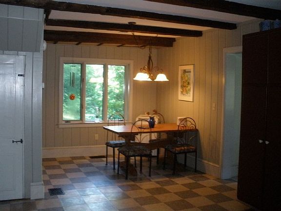 This antique cape circa 1830 has some antique features intact- fireplace mantels, wood floors, and woodwork. Large country kitchen and wonderful recreation room with stone fireplace. Second floor has been beautifully finished in contemporary style. The 40 by 40 barn is currently being used as a dog kennel, but could easily make a horse barn again.