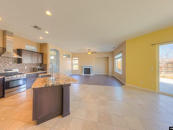 Country living with style! Gorgeous newer home on spacious lot with amazing Nevada blue sky, mountain views that will have you loving this home! Open floor plan with loads of natural light, high ceilings, plank and tile flooring, custom paint colors throughout. The great room/kitchen is stunning with a centerfold fireplace and granite/grand island. Chefs dream kitchen with loads of counter and cabinet space, upgraded appliances, pantry and nook/dining area ..see extended remarks