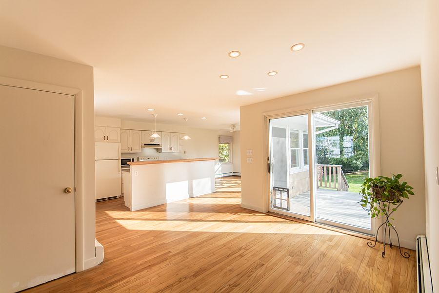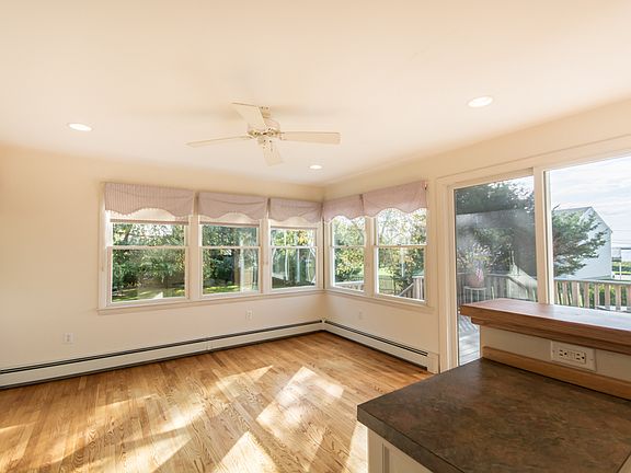 2 Bedroom 2 Bath single level home located in a wonderful neighborhood in walking distance of Easton's Pond and the beach! This open floor plan home offers beautiful hard wood floors and loads of light with the east and west facing orientation. Enjoy water views of Easton's Pond and First Beach from your sheltered deck or from your bright and sunny room adjacent to the open kitchen . With an attached single car garage, full concrete basement with interior and exterior access, two en suite bedrooms and a working fireplace in your living room, this is an ideal home whether you're just starting out, downsizing or looking for a base on which to build your new luxury Newport Home with a view! Wired for a generator and a portable generator will convey with the house.