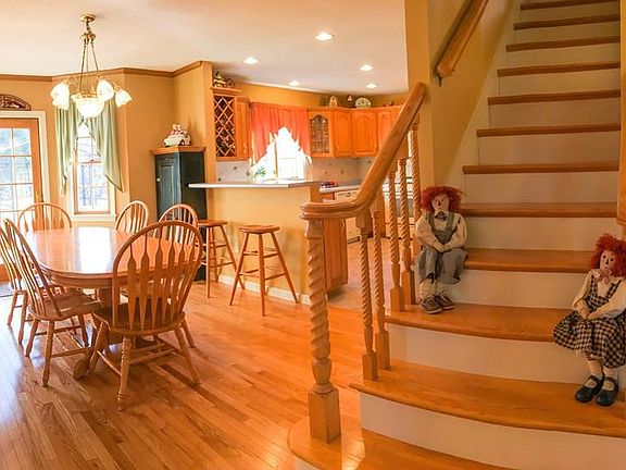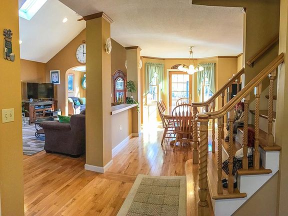 Rare opportunity!This quality one owner custom built home has absolutely everything you need .Let's start with the welcoming front porch.Right away it feels like home. Enter the foyer and leave your cares behind because this is just the beginning.The open floor plan has a huge kitchen,tons of counter tops, gas cooking, columns divide the dining room and living room.You will love entertaining here! Living rm has a gorgeous brick hearth w/ pellet stove There's a quiet room /office w/French doors to the multi tiered decks and patios.The mstr suite has a full bath w/soaking tub,shower,dbl vanity w/closet.The balcony in the mstr bdrm has a view of Harris Pond.You have 400 ft of frontage on the pond- canoes,kayaks, even trolling motors are allowed for fishing There are 2 more bedrooms, lots of closets. The fmly rm in the lower level has a stone hearth with a pellet stove and a custom bar,tv stays!. Also palladium windows,high ceilings,12x28 barn w/electric, perennials. It's just perfect!