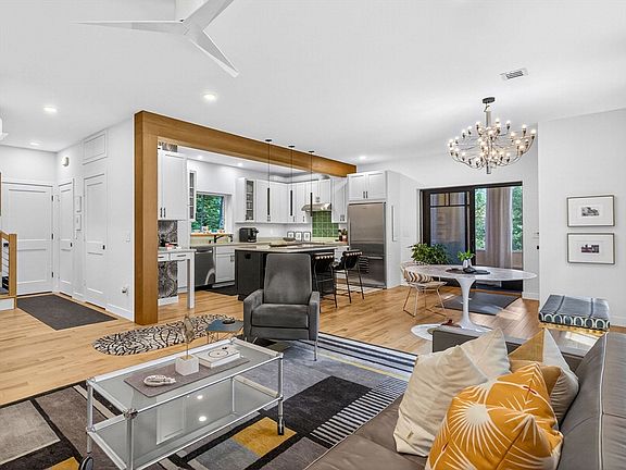 - Features: Beamed Ceilings, Flooring - Hardwood, Countertops - Upgraded, Kitchen Island, Cabinets - Upgraded, Open Floorplan, Paints & Finishes - Low VOC, Recessed Lighting, Stainless Steel Appliances, Lighting - Pendant