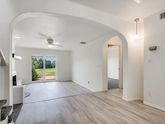 Tucked along the lush fairways of Ram Rock Golf Course, this 2-bedroom, 2.5 bath townhome in the distinctive Villas Albanas community delivers comfort, style and resort-style amenities. With two dedicated parking spaces right out front and overflow parking for guests, it’s easy to welcome friends and family. Residents also enjoy access to a sparkling community pool, ideal for relaxing after a day on the golf course. Step inside to discover fresh updates, including new vinyl flooring and carpet. The main level features a powder bath, a well-equipped kitchen with stove, microwave, and dishwasher, plus a laundry room with space for a washer and dryer. The dining area flows seamlessly into the sunken living room, complete with a decorative niche, cozy fireplace, and patio access for enjoying the outdoors. A domed-ceiling bedroom on this level offers a private en-suite bath, creating a comfortable guest or owner’s suite. Upstairs, the second bedroom boasts a Juliette balcony, a private patio with lush golf course views, and its own en-suite bath. Whether sipping morning coffee while overlooking the greens or cooling off in the pool, this home is made for relaxation. Perfect for full-time living or a lock-and-leave getaway, this townhome offers the ideal Horseshoe Bay lifestyle—golf, leisure, and comfort all in one.