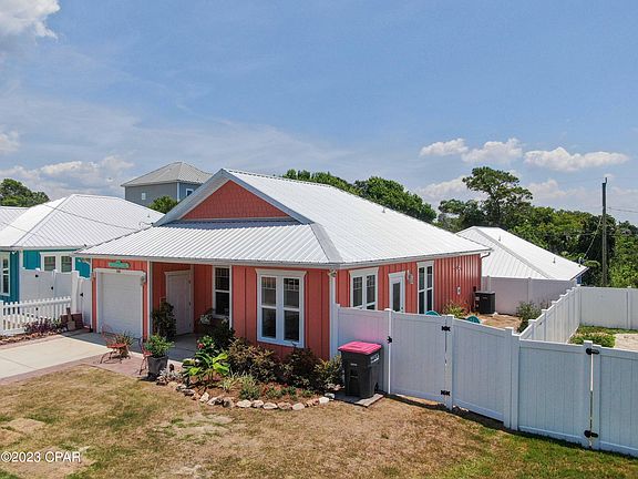 CURRENTLY UNDER CONTRACT, SELLER WILL CONSIDER BACKUP OFFERS. This beach home is a dream come true. Located on the quieter west end of PCB in the golf cart neighborhood of Laguna Beach. Built in 2021 on one of the quieter streets in the neighborhood and located just a short walk to the beautiful sandy white beach. This could be someone's dream primary home, sweet second home or a money making short term rental. Open concept with 2 full bedrooms and 2 full bathrooms and as an added bonus it also has a third room that can be used any way you want.: office, storage room, bunk room, artists room, etc.. Builder added LVP floors, quartz countertops, metal roof, outdoor hot/cold shower, fully fenced yard, pavers in side yard and parking pad, and much more. FURNISHINGS AND W/D DO NOT CONVEY.