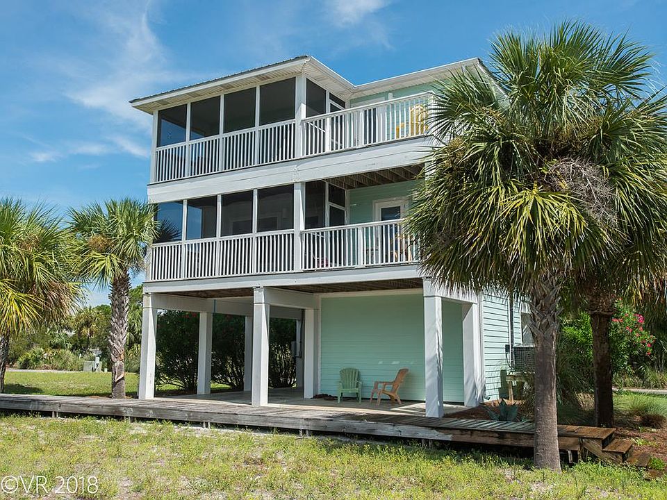 This 3-bedroom, 3-bath, 1,994 sq. ft. home is located in Barrier Dunes, a gulf front gated community. Kitchen has granite countertops, stainless appliances, custom cabinets & breakfast bar that seats 4. Off the living room is a screened deck & an open deck. Additionally, 1st living level has a laundry room, queen bedroom with a full bath, double vanity & tub. This room opens out onto an open deck. On the 2nd level is an additional bedroom & a master with a king bed, bath w/double vanity, walk-in closet, & shower/tub combination. It also opens to a screened porch with beautiful views. Barrier Dunes 2 pools, 2 tennis courts, a playground, deeded beach access & more. Great beach home or investment property! POST HURRICANE MICHAEL UPDATE: Sustained only torn screens. No flooding or structural damage of note.