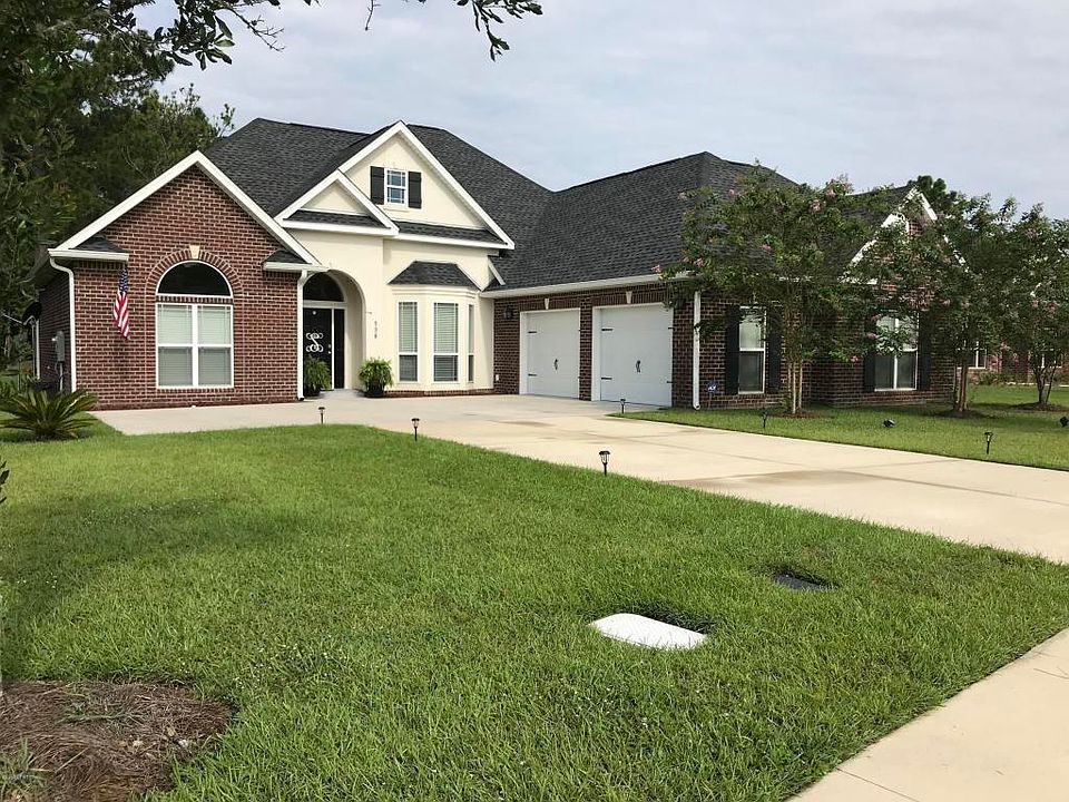 Location is everything! This eye-catching brick/stucco beauty is on a golf course in the highly sought-after area of Lynn Haven called ''The Meadows. The home is located very close to the entrance with easy access to Hwy 390. You'll like the open floor plan! 3 bedrooms, 2 full baths and a 1/2 bath downstairs with another 1/2 bath upstairs. The beautifully designed kitchen with breakfast bar easily serves two other dining areas. The Master suite features a sunlit garden tub, adjacent shower, double vanity & 2 spacious walk-in closets. Entertain in the sunroom or step just outside to the pergola for an open-air experience. The upstairs room can be a 4th BR, game room or ''man cave!'' Your boat and car will both fit nicely in the double garage. Tour it today! (All measurements are approximate