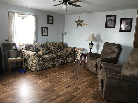 On the south side of Angola this home sits on almost an acre. Large master bedroom with sun room off the back overlooking the expansive back yard. Entire yard is fenced and encloses a large outbuilding with overhead door as well as a single wide trailer used for storage. There was water and sewer to the trailer at one time. Two carports are included in the sale. Pool table and lawn mower are negotiable. Come and view this property.