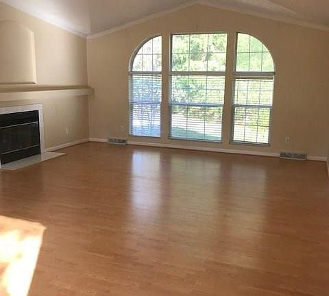 - Living Room: Fireplace, Molding, Ceiling-Vaulted, Floors-Laminate