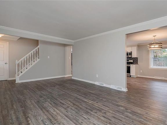 Completely renovated & move-in ready 2 story 4-bedroom home with 2.5 baths and attached garage in the award-winning Moon Area School District. Upon entry, you are greeted with luxury vinyl plank flooring that is showcased in the living room & throughout the first level. The fully updated eat-in kitchen with granite countertops, tile backsplash, stainless steel appliances & crown molding is open to the family room which boasts a beamed ceiling, wood-burning fireplace, along with offering access to the private back yard & covered porch. The master bedroom has an ensuite bath with his & her sinks. The finished lower level is spacious & an ideal place for entertaining with a built-in wet bar. The laundry room offers tons of additional storage. This home is located close to Brooks Elementary and offers easy access to the Robinson Mall & surrounding shopping & dining. Minutes from the Moon Park & Ride & PIT airport. Close to highways & short commute downtown. A home warranty is included.