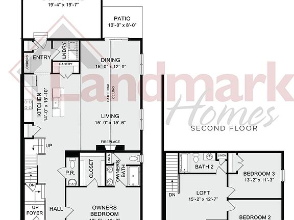 This 2-story, end-of-row townhome includes a first-floor owner’s suite and a cathedral ceiling in the living and dining rooms. A 2-car, rear load garage opens into a mudroom with built-in lockers and bench. Stylish vinyl plank flooring flows throughout the main living areas. The living room, warmed by a gas fireplace with stone surround, opens to the well-appointed kitchen with stainless steel appliances and quartz countertops with tile backsplash. Sliding glass doors in the dining room provide access to the rear patio. The owner’s suite features an expansive closet, and a private bathroom with a tile shower and double bowl vanity. On the 2nd floor is a loft space, two additional bedrooms, and a full bathroom.