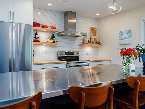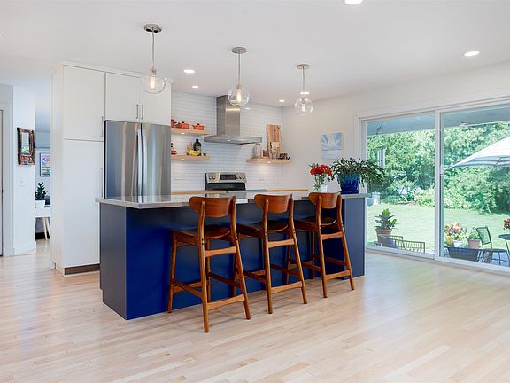 Elegantly and extensively remodeled Mid-Century Modern Ranch in a desirable section of South Burlington’s Laurel Hill neighborhood. This 3 bedroom, 3 bathroom home offers a gorgeous and light filled open concept Kitchen-Living area with custom design and installation by Dovetail Design of Hinesburg, VT. Custom cabinets, subway tile backsplash, butcher block counters, open shelving, new appliances, and a stainless steel island that is a home cook’s dream. The open living room is terrific for entertaining with original built-ins, cozy woodstove insert and a step away from a window and skylight ensconced dining area/sunroom. Family room addition provides great space to relax, sweet office nook, main floor laundry and access to the backyard. Upstairs bathrooms fully remodeled with ceramic tile flooring, toto wall hung toilets and duravit sinks. Shared bathroom with tiled tub and Primary en-suite with tiled in shower. 3 nicely sized bedrooms with closets. Downstairs has 575 sqft of flexible finished space that has been rewired, insulated, new sheetrock & LVP flooring. Newly remodeled ¾ bathroom in basement and laundry hookups for maximum convenience. Attached two car garage and unfinished basement space provide ample storage. Tranquil backyard with mature landscaping and 8ft. cedar fence. short distance to the joys of Szymanski Park, South Burlington’s rec path and in the same neighborhood as Orchard School. Close to many conveniences. Owner is a Licensed VT Real Estate Agent.