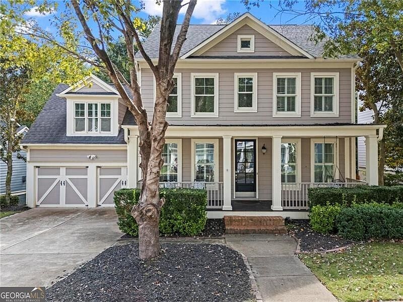 Stunning John Wieland Craftsman home in River Green with fully finished basement! The welcoming front porch opens to a bright, open main level featuring textured real hardwoods, a flexible dining room or office, and a seamless flow between spaces. The gourmet kitchen includes granite countertops, an oversized island, gas cooktop, new Bosch dishwasher, new Samsung refrigerator, abundant cabinetry, walk-in pantry, and a sunny breakfast area with bay window opening to the spacious living room with built-ins, wall of windows, and gas fireplace. Upstairs offers an oversized bedroom with ensuite bath and dual walk-in closets, plus a secondary bedroom converted into a custom dressing room. Two additional bedrooms - one oversized, ideal as a playroom or guest suite-share a refreshed bath with new tub and fixtures. A large laundry room completes the upper level. The finished basement adds flexibility with a bedroom, full bath, living room, kitchenette, and private entry, perfect for guests or multigenerational living. Outside, enjoy a beautifully landscaped, level, fully fenced backyard with new sod, French drains, and a gate to the woods for easy maintenance. The patio off the basement and porch off the main level provide inviting entertaining spaces. Additional highlights include freshly painted interior, epoxy-coated garage floor, new engineered hardwoods, two fireplaces, restored fountain, and a 2 car garage. River Green residents enjoy resort-style amenities including multiple pools (one Olympic-sized!), tennis and pickleball courts, fitness center, 2 clubhouses, playgrounds, sports fields, and scenic trails, all in a prime location near shopping, dining, and top-rated schools. Don't miss this beauty!