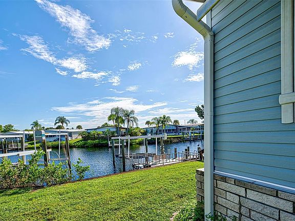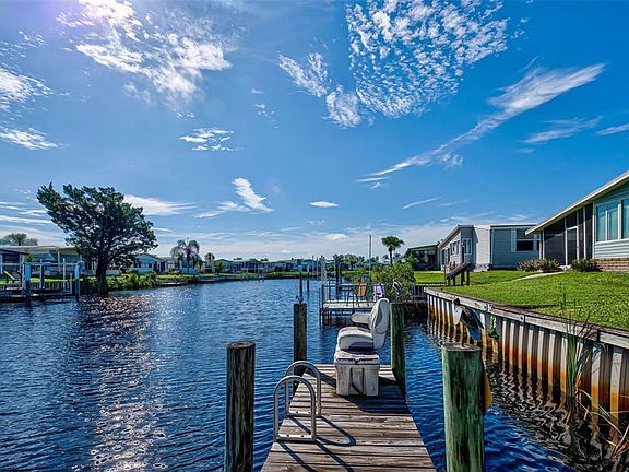 Welcome home to your beautiful WATERFRONT property!!! LAZY RIVER MHP is one of the most sought after 55 plus waterfront communities in SWFL. This FURNISHED 2 bedroom, 2 bath waterfront home is located just moments away from the Myakka River. Come sit outside and enjoy the frequent dock visitors such as gators, manatee, turtles and dolphins. Kitchen has been remodeled with lots of built in cabinets, Corian countertops, desk, credenza and center island with cooktop for convenience. This home features an open floor plan, beautiful upgraded sculptured carpet in living room and bedrooms, and a newer vanity and shower in guest bathroom. The laundry room is located off the carport and features washer/dryer and shelves for storage. Enjoy the enclosed lower level entertaining space with a built in mini-split ac unit to stay cool on those hot Florida days. This home also features a generator in case of storms and you loose power (runs on propane), and RAIN SOFT water softener system. As you step outside you will notice the dock and boat lift that are included with this property and there is also a seawall. A low monthly maintenance fee of $168 includes lawncare, cable tv, and many amentities such as pickleball, pool, tennis, bocce ball and social activities. Golf Carts are welcome in this community as well.