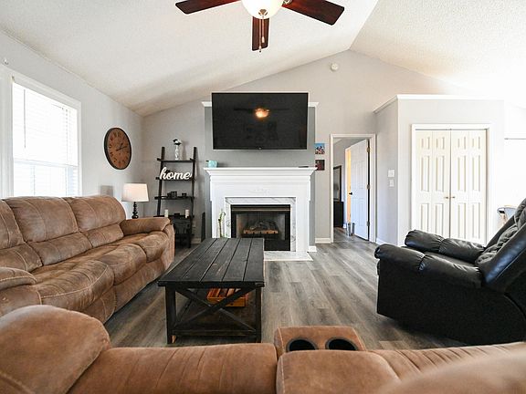 Welcome Home! This charming ranch on a .84 lot features a rocking chair front porch, an open, spacious living area with cozy fireplace fit with beautiful trim. Kitchen featuring stainless steel appliances and a large pantry walks out to the back deck overlooking a large, fenced in backyard with a shed for all your storage needs. With a split floor plan the spacious Owner's Suite offers privacy across the home from the additional 2 guest rooms. Don't miss the Owner's Suite closet with expansive shelving! Sellers didn't miss a beat updating the flooring, adding a fence, and paving the driveway! Schedule your showing soon!